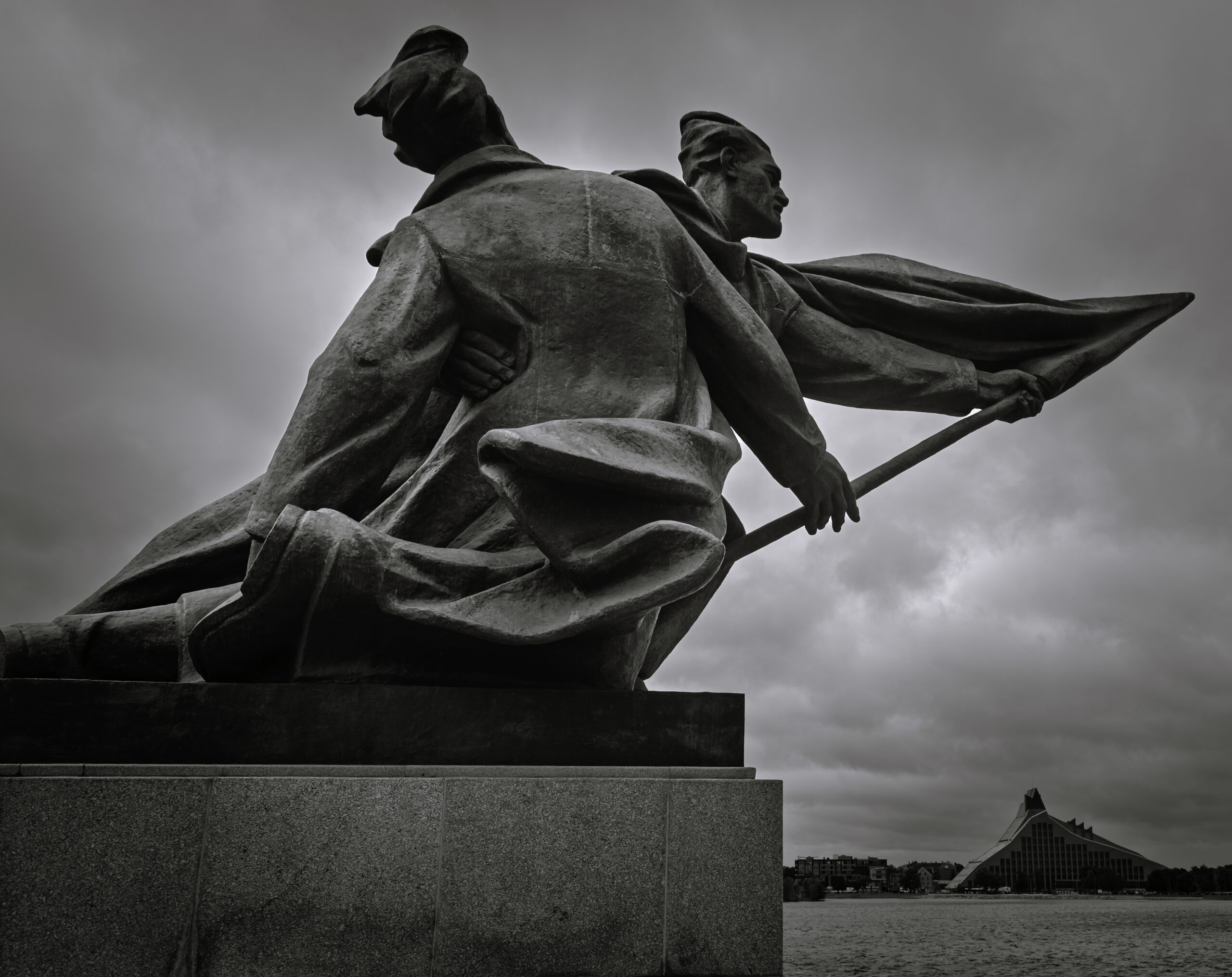 Statue and Library BW