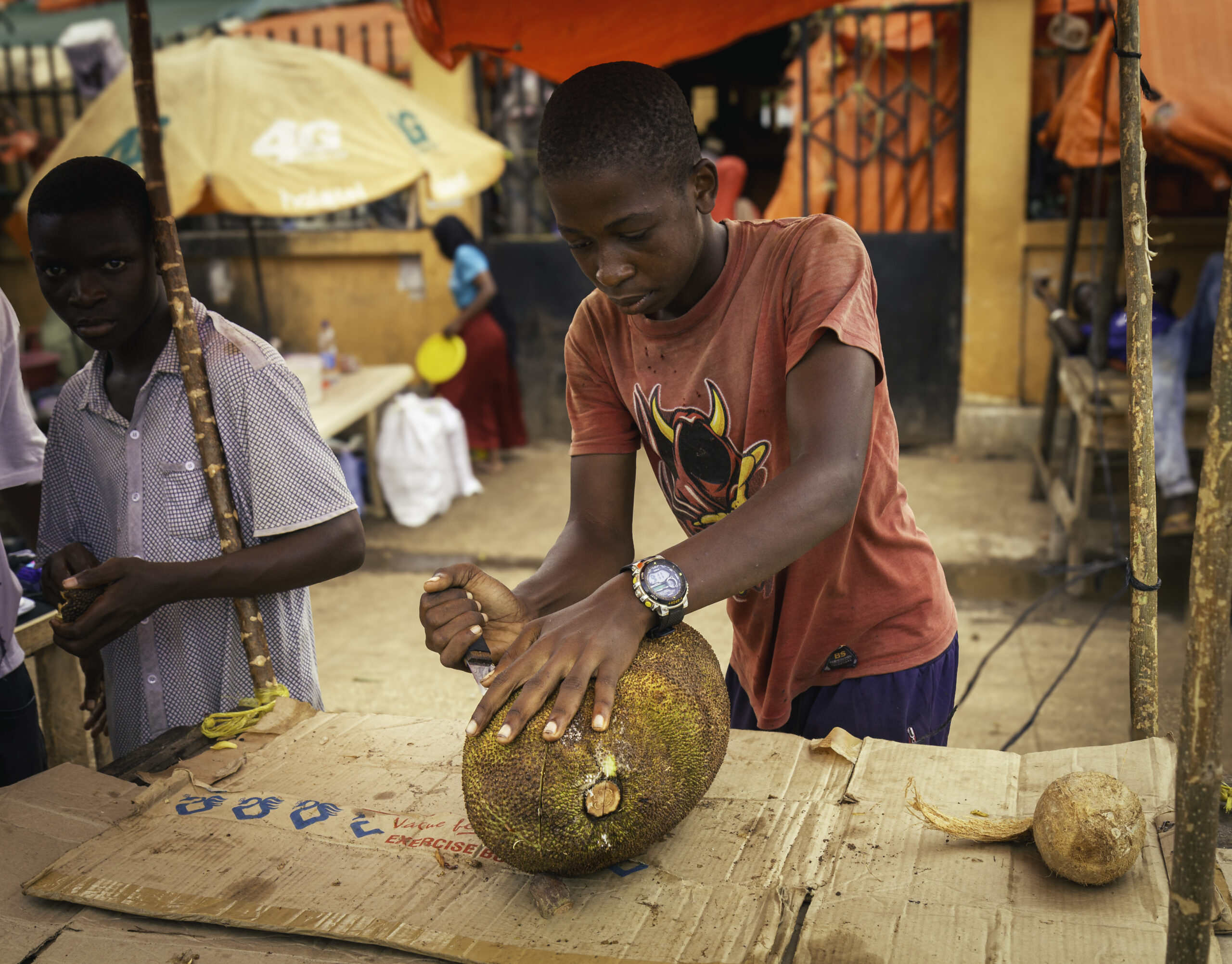Boy cutting fruit