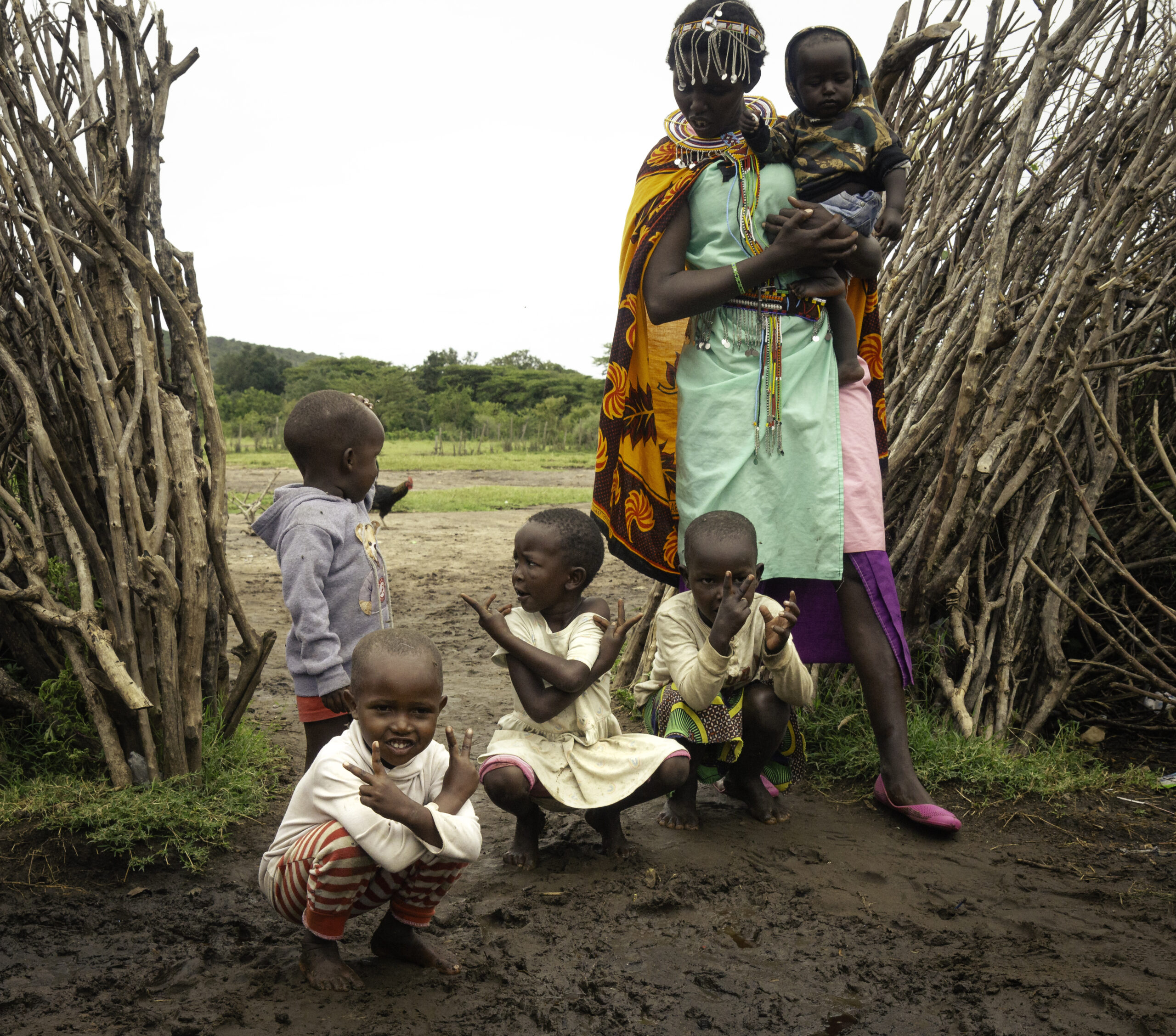 Children and woman in village