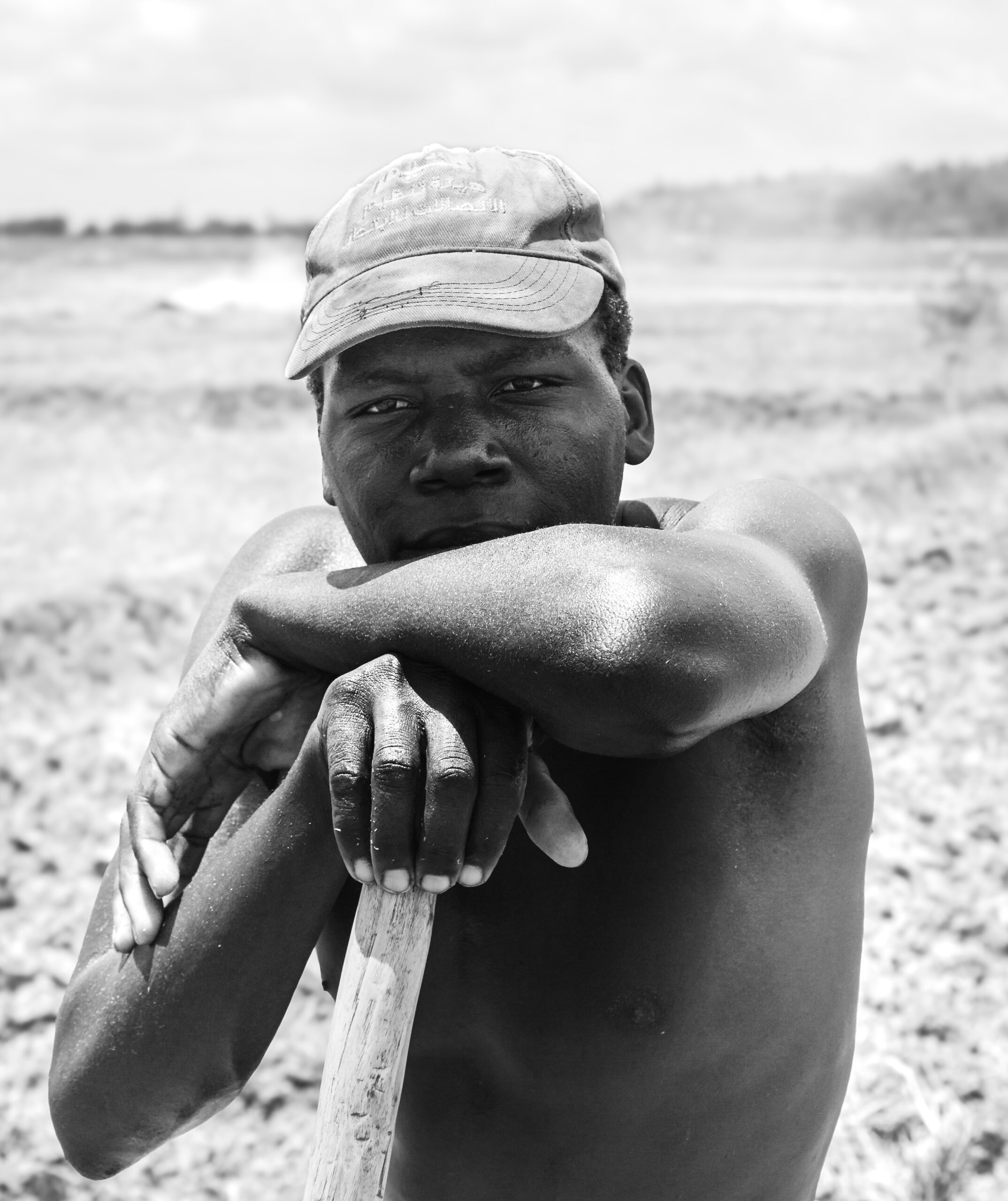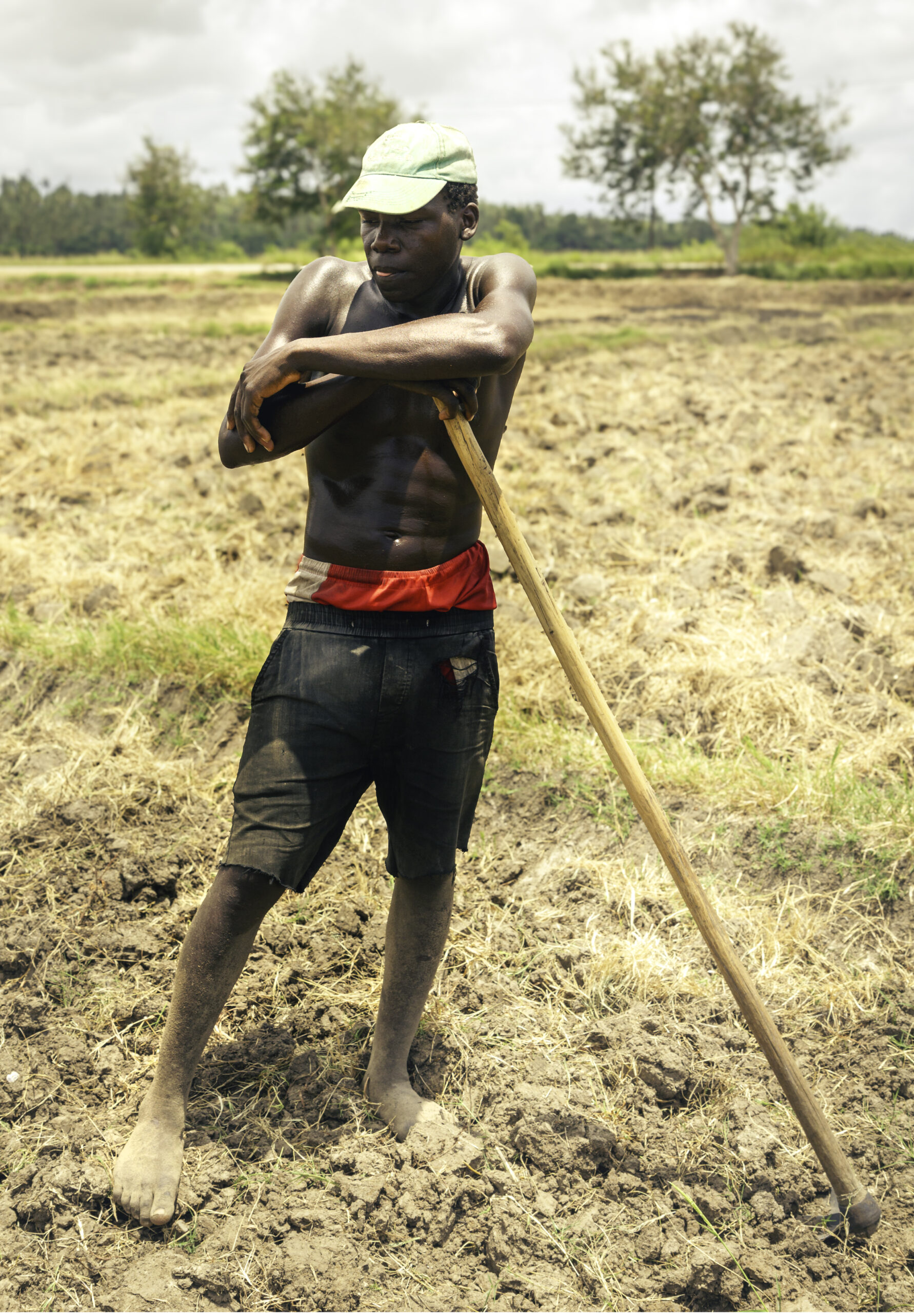 Man resting on hoe