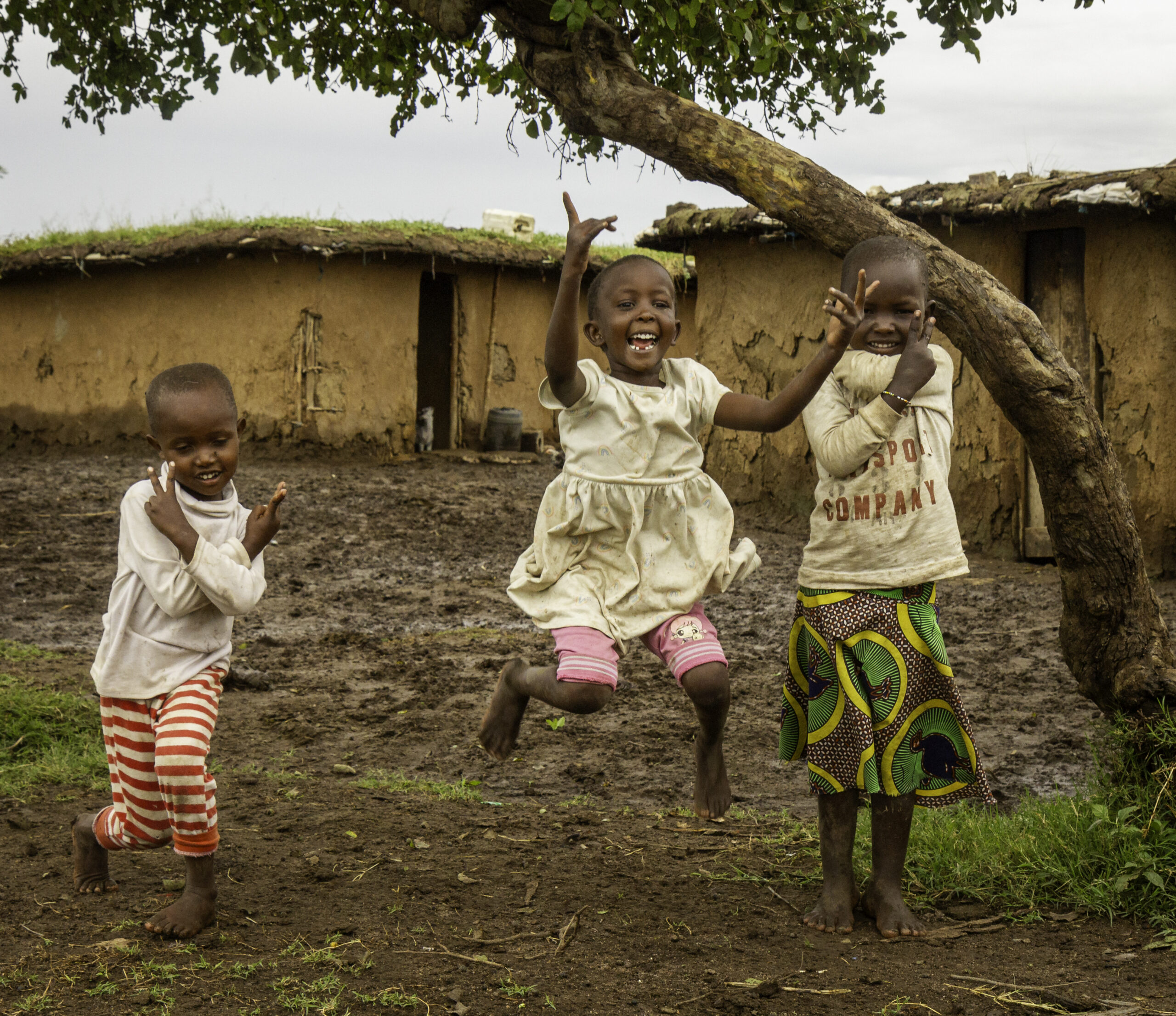 Three children in village