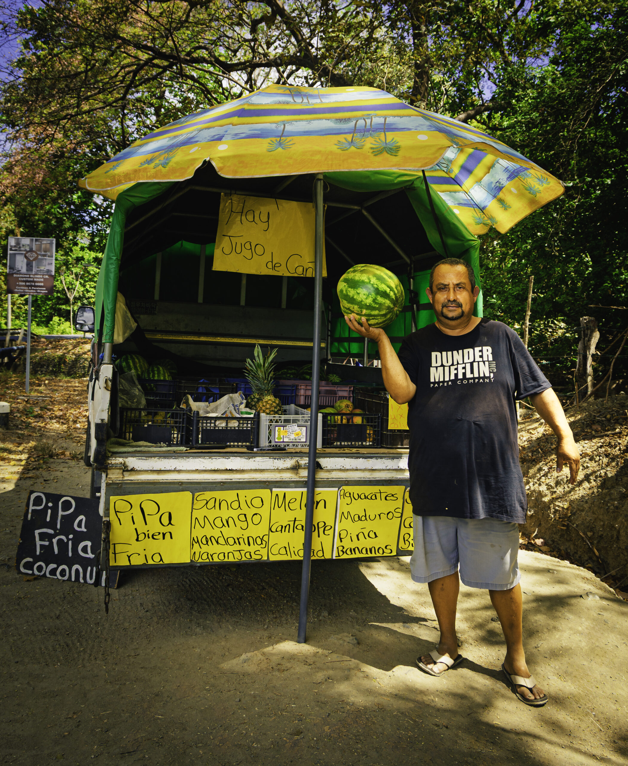 Watermelon man and van